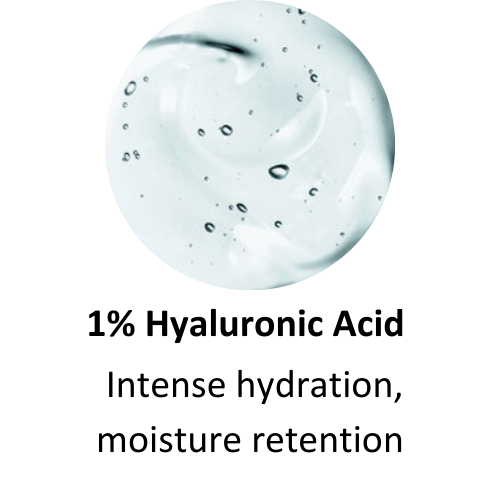 Low molecular weight Hyaluronic acid at 1% concentration, deeply hydrates and plumps skin.