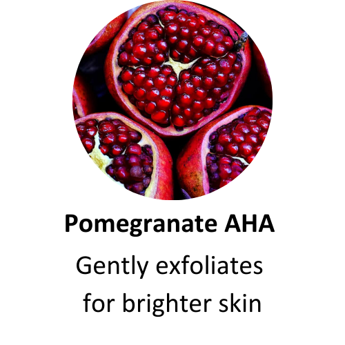 With AHA fruit enzymes, Glycolic acid beads and Blue tansy