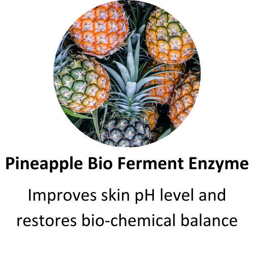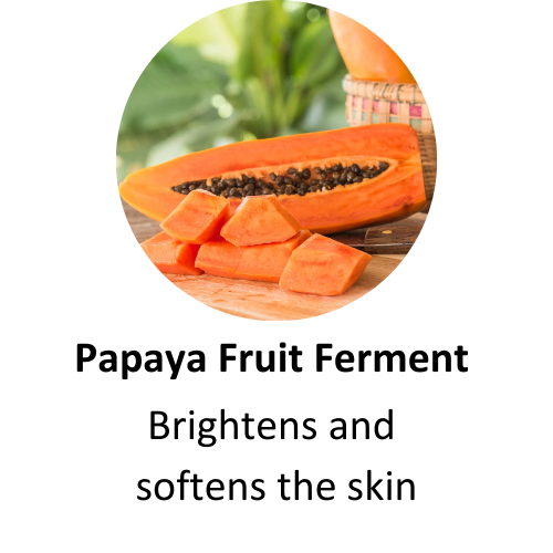 - Papaya fruit ferment, restores the bio-chemical skin balance and maintains skin's natural pH.