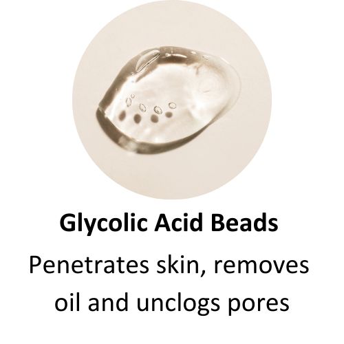 - Glycolic acid beads and bamboo silica gently slough away the dull, dry upper layer of skin cells.